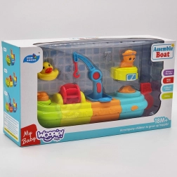 Barevná loď do koupele značky WOOPIE přináší spoustu vodních zážitků pro nejmenší. Sestavíte ji ze čtyř barevných člunů do jedné velké lodi a díky jeřábu s hákem, vodnímu mlýnku a vodnímu kanónu se každé koupání promění v dobrodružství.