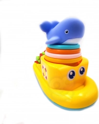 Tento pestrý set do vany přináší dětem od 12 měsíců spoustu interaktivní zábavy. Plovoucí loď je vybavena otočným vodním mlýnkem, který se roztáčí proudem a učí děti principům příčiny a následku. Měkká gumová velryba při stisknutí píská, čímž podněcuje smyslové vnímání a podporuje hru v příjemném, bezpečném prostředí.