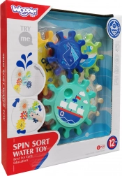 Přineste do koupelny spoustu zábavy s sadu 6 zábavných vodních hraček od značky Woopie. Tato sada obsahuje barevné ozubené kolečka ve dvou velikostech, která lze jednoduše připevnit pomocí přísavek na kachličky, vana či sprchový kout. Dítě otáčením jednoho kolečka uvede do pohybu celou konstrukci, což podněcuje k rozvoji logického myšlení a koordinace.