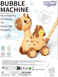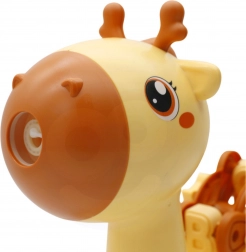 Hledáte hračku, která děti rozpohybuje a zároveň je nadchne? WOOPIE žirafa 2v1 kombinuje bublinkovač s pchacím chodítkem. Stačí nalít roztok do nádobky, zapnout a sledovat, jak barevné bubliny létají daleko díky integrovanému větráčku, zatímco žirafa hraje melodii a bliká světýlky.