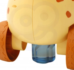 Žirafa vypouští bubliny ve vysoké frekvenci a větráček je rozfouká ještě dál – ideální pro venkovní i vnitřní zábavu.