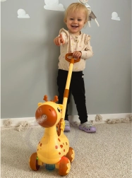 Dlouhá vodicí tyč umožní pohodlné vedení a podporuje hrubou motoriku i koordinaci. 4 kola zajišťují stabilitu a plynulou jízdu na různých površích. Součástí jsou i připevňovací prvky pro kreativní hraní. Ideální na dvorek, park i do dětského pokoje.