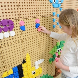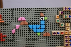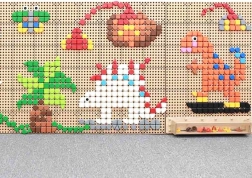 Barevná sada geometrických kolíčků, které lze snadno připevnit na speciální STEM tabule. Tato hračka podporuje kreativitu a fantazii dětí při vytváření vlastních obrázků a vzorů.