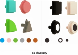 - Obsah balení: 64 kolíčků ve 4 tvarech: čtverec, kruh, trojúhelník a čtvrtkruh.