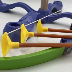 Set je vyroben z odolného plastu s hladkými hranami a láká k opakované hře díky atraktivním barvám. Děti si procvičí logické myšlení, manuální dovednosti a koordinaci, zatímco si užijí spoustu zábavy při míření na různé cíle na terči.