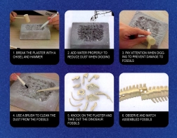 Zábava spočívá v odhalování skamělin a sestavení kostry z objevených fosilií. Díky přiloženým nástrojům na kopání, kladívko, dlátko a kartáček mohou děti strávit hodiny edukativní zábavou, podporovat se v přírodovědných naukách a rozvíjet své praktické dovednosti i myšlení.
