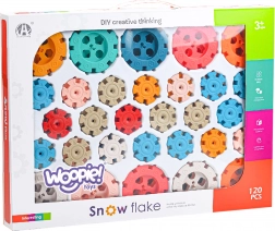 Stavebnice Sněhové Vločky od Woopie je skvělá hračka, která fascinujícím způsobem rozvíjí dětskou představivost a logické myšlení. Díky unikátnímu designu a otevřeným otvorům ve vločkách umožňuje spojující dílky nejen kolmo, ale i pod úhlem, což zvyšuje kreativní hranici.