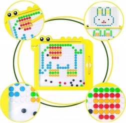 Objevte svět tvoření s magnetickou tabulí WOOPIE MAGPAD v dinosauřím motivu. Děti mohou snadno skládat mozaiky a vzory pomocí 110 magnetických knoflíků a magnetického pera. Součástí je 10 oboustranných šablon (20 vzorů). Hračka je od 3 let, snadná na ovládání a skvěle rozvíjí jemnou motoriku, kreativitu a soustředění.