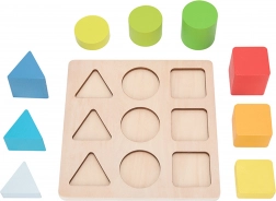 - Smysluplná zábava: 9 dílků (trojúhelník, čtverec, kruh) pro opakované skládání a třídění.