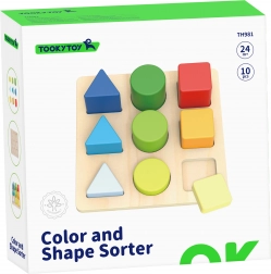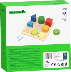 Dřevěná skládačka od značky TOOKY TOY učí děti rozpoznávat tvary a barvy a rozvíjí jemnou motoriku, logické myšlení i koordinaci ruka–oko. Dítě vkládá 9 barevných dílků – trojúhelníky, čtverce a kruhy – do správných otvorů v tabulce. Skvělá zábava i trénink paměti a koncentrace pro nejmenší.
