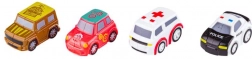 Set zahrnuje čtyři různě designovaná a barevně odlišná autíčka, jako Jeep, klasické auto, sanitku a policejní auto. Každé auto má unikátní design pro různé herní situace.