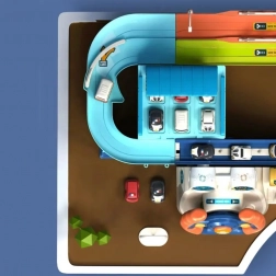 Barevná dráha obsahuje rampy, mosty a parkovací plochy. Děti mohou závodit s několika autíčky a vytvářet si širokou škálu herních scénářů.