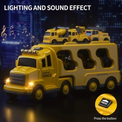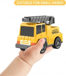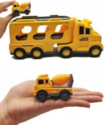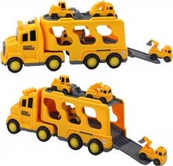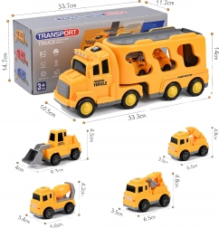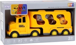 Objevte pestrý svět silniční pomoci a stavby se setem WOOPIE. Velká žlutá transportní souprava odveze a uskladní všechna menší autíčka – bagřík, míchačku, jeřáb a buldozer. Díky setrvačnímu pohonu se menší stroje rozjedou jednoduchým postrčením, světla a zvuky dodají hře realistický zážitek.