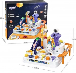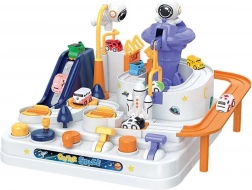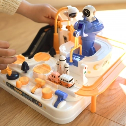 Objevte zábavnou interaktivní vesmírnou dráhu s překážkami, kde děti ovládají tlačítka a páčky, spouštějí výtahy, překlápějí mosty a pomocí magnetické rakety přesouvají autíčka. Bez baterií, plná pohyblivých prvků, podporuje jemnou motoriku, logické myšlení a představivost. Součástí jsou 3 autíčka pro solo hru i soutěžení.