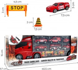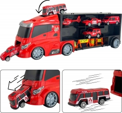 Tato hračka od značky WOOPIE je ideální pro každého malého fanouška hasičských vozidel, transportu a akcí! Skládá se z velkého transportéru, který pojme 4 hasičská auta, vrtulník a další výstražné značky, což dodává hře na realismu. Děti mohou díky vystřelovacímu mechanismu spouštět auta a vysílat je na různé vzdálenosti. Transportér je dlouhý 40 cm, což zajišťuje dostatek prostoru pro všechny vozidla a příslušenství. Tento set výrazně rozvíjí dětskou představivost, povzbuzuje tvorbu vlastních herních scénářů.
