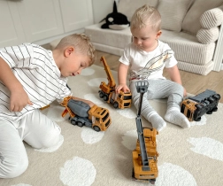 S touto sadou mohou děti objevovat různé stavební činnosti a rozvíjet svou představivost. Obsahuje šest velkých vozidel, každé s pohyblivými částmi a realistickými detaily, které napodobují skutečné stavební stroje.