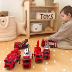 - 6 vozidel v balení: žebříkový vůz, cisterna, jeřáb, bojový hasičský vůz, vůz s vysouvacím košem a pohyblivou platformou, nákladní vůz se zvedací/ spouštěcí plošinou.