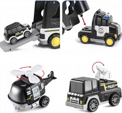- Transportní tahač (laweta) + 4 policejní vozidla: obrněný vůz, cisterna s vodním dělem, helikoptéra, radiovůz