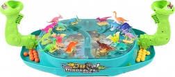 - 1× herní deska s krytem a místy pro dinosaury, 2× vystřelovač, 24× pěnová kulička (žluté a oranžové), 16× barevná figurka dinosaura, dárkové balení