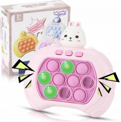 Interaktivní hra Pop It Králík je antistresová hračka vhodná již pro nejmenší děti. Hra vydává veselé zvuky, jež baví děti a zpestřují hru. Je malá a lze ji snadno vzít s sebou. Pop It přináší radost dětem i dospělým, kteří si ji rádi vyberou. Rozvíjí mysl, manuální dovednosti, koordinaci oko-ruka a pomáhá při boji proti stresu.