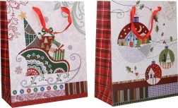 Tato kvalitní papírová dárková taška s vánočním motivem usnadní balení dárků a dodá jim slavnostní vzhled. Díky rozměrům 26 × 32 × 12 cm se hodí na knihy, kosmetické balíčky, svíčky či menší krabice. Stačí vložit dárek a máte okamžitě připravené elegantní balení.