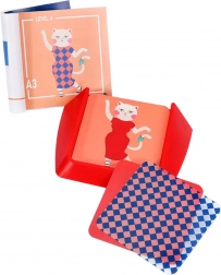 - Stojan na karty, 4 šablony postaviček, 18 karet se vzory, knížka s úkoly