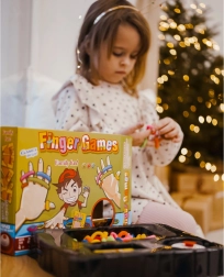 WOOPIE FINGER GAMES je svižná a chytlavá hra, ve které děti i dospělí trénují obratnost prstů, postřeh a plánování. Vytáhněte kartu se vzorem a co nejrychleji navlékněte barevné gumičky na prsty přesně podle zadání.