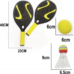 - Bezpečné pro děti: měkký pěnový míček, lehké plastové rakety