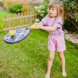 S touto univerzální sadou raket WOOPIE si užijete spoustu pohybu a her venku. Díky měkkému pěnovému míčku i barevnému košíčku je hraní bezpečné a zábavné pro menší děti, stejně jako pro celou rodinu. Lehká konstrukce a pohodlné držení podporují jistý úchop a snadné ovládání.