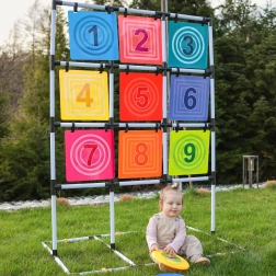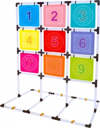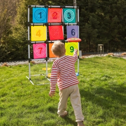 Skvělá volba pro solo trénink i týmové výzvy. Děti si procvičí jemnou a hrubou motoriku, oční–rukou koordinaci i zaměřování na cíl. Barevné panely s velkými čísly podporují vizuální orientaci a dělají ze hry přehlednou a napínavou aktivitu.