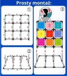 Devět kontrastních panelů s čísly 1–9 zvyšuje přehlednost hry, podporuje rozpoznávání čísel a umožňuje různé bodovací režimy pro začátečníky i pokročilé.