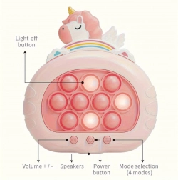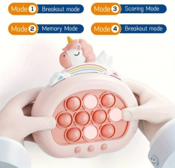 Elektrická hra Jednorožec Pop It je skvělou zábavou a prostředkem pro rozvoj dětí od tří let věku. Děti i dospělí si užijí zatlačování bublin a soutěžení. Hra Pop It nabízí různé herní módy, které rozvíjejí různé dovednosti: