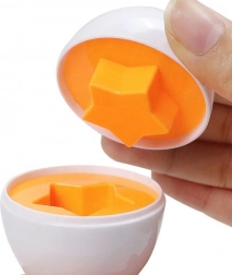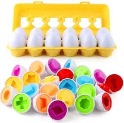 Objevte chytrou hračku, která děti motivuje k samostatnému objevování. Každé vajíčko se skládá ze dvou půlek s konkrétním tvarem a barvou – úkolem je najít správnou shodu a spojit je dohromady. Díky lehké a kompaktní konstrukci je sada ideální na doma i na cesty.