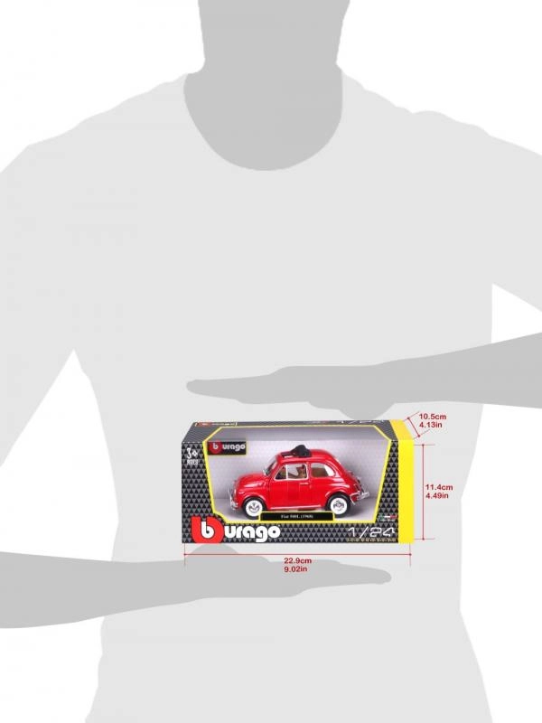 Model auta Bburago Fiat 500L (1968) v elegantní červené barvě nabízí realistické zpracování klasiky italského designu. Díky kombinaci litého kovu a přesných plastových doplňků působí model autenticky a odolně. Většina modelů v této řadě má otevírací dveře, kapotu nebo kufr, u vybraných verzí nechybí ani funkční řízení pro ještě větší požitek z detailů.