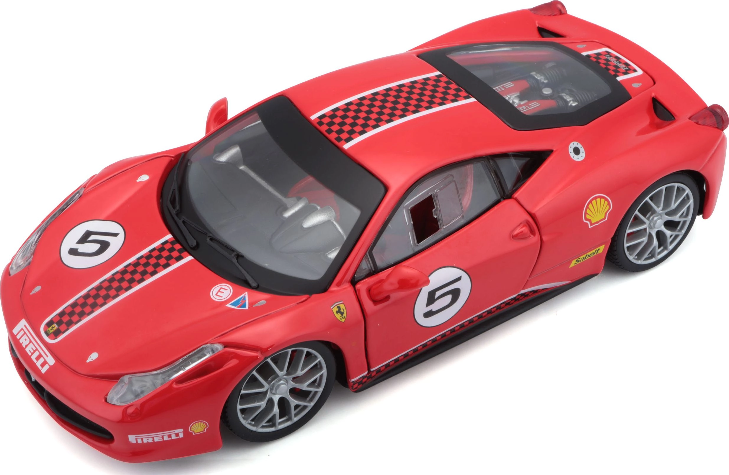 Tento licencovaný model vozu Ferrari 458 Challenge potěší kvalitním zpracováním karoserie, precizními potisky a věrnými proporcemi. Díky otevíracím částem a detailnímu interiéru je perfektní jak pro výstavku, tak pro hraní.