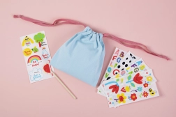 Barevná písmena a číslice umožní pojmenovat sáček a doplnit jej veselými obrázky – každý kus bude jedinečný.