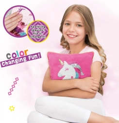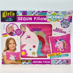 Objevte svět módy a tvoření s kreativní sadou Woopie ART&FUN. Jednoduché šití zvládnou i začátečníci – stačí trocha představivosti a trpělivosti. Díky oboustranným flitrům bude váš jednorožčí polštář zářit a při přejetí rukou kouzelně změní barvu. Materiály jsou příjemné na dotek a bez ostrých hran.