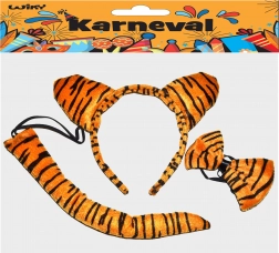 Proměňte se během chvilky v roztomilého tygra! Tato karnevalová sada pro děti obsahuje vše potřebné pro rychlou a pohodlnou proměnu – tygří ouška na čelence, mašličku kolem krku a slušivý ocásek. Ideální na karneval, školní besídky i tematické oslavy.