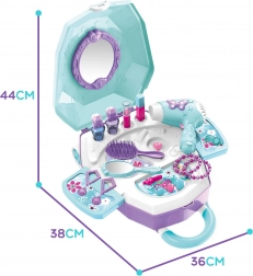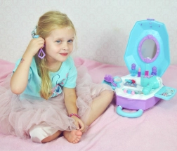 Dětský kufřík na kolečkách se během chvilky promění v kompletní toaletní stolek se zrcadlem a výsuvnou pracovní plochou. Praktické provedení 2v1 zaručí zábavu doma i na cestách a zároveň snadné uložení všech doplňků.