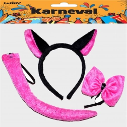 Proměňte se během chvilky v roztomilou kočičku s touto kompletní sadou doplňků. Obsahuje čelenku s oušky, mašličku kolem krku a slušivý ocásek – ideální na karneval, párty i školní besídky. Snadné použití a univerzální velikost pro děti i dospělé. Rychlá proměna, pohodlné nošení a okamžitý efekt zaručeny.