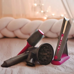 - Bohaté příslušenství – nástavce k fénu, kulatý kartáč a hřeben pro různé účesy.