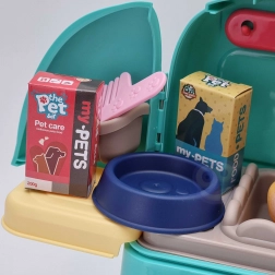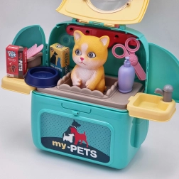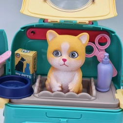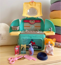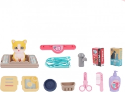 Figurka kočičky, misky, nůžky, hřeben, „šampon“, košík na doplňky, krabičky na krmivo a další. Vše má své místo, takže je uklízení hračka.