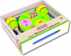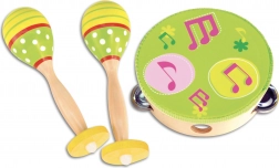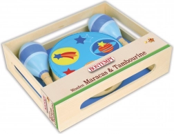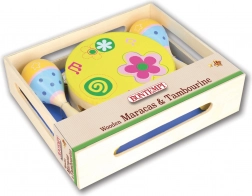 Hudební sada pro malé muzikanty přináší zábavu, rozvoj rytmu a jemné motoriky. Obsahuje 2 dřevěné rumba koule a tamburínu s 8 činely – ideální pro první hudební pokusy a domácí vystoupení.