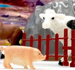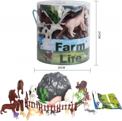 - figurky hospodářských zvířat, ohrada, skály, rostliny, herní podložka, tematická mapa, úložné vědro/box