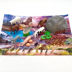 - Kompletní set 34 dílů – figurky hospodářských zvířat, ohrada, kameny, rostliny a herní podložka.