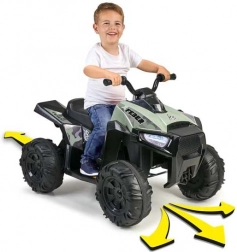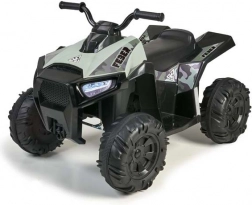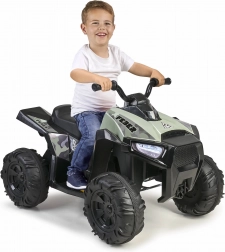 Nádherná dětská elektrická čtyřkolka od španělské značky Feber. Kamuflážní barva dodává terénní vzhled. Čtyřkolka je vybavena velkými, odolnými koly pro lepší přilnavost a její chod je tichý, aniž by poškozovali podlahy.
