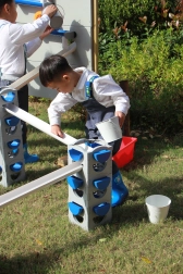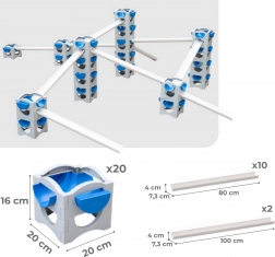 Robustní konstrukce a jednoduché propojení dílů umožňují rychlé přestavby a nekonečné konfigurace. Vhodné pro zahradu, terasu i dětské koutky – perfektní pro smyslovou a experimentální hru dětí od 3 let.