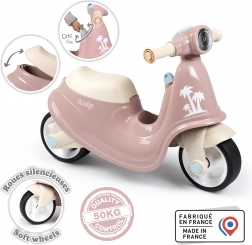 Růžový skútr od renomované značky Smoby je roztomilé retro vozítko na dvou kolech, ideální pro malé děti. To je rozvojová hračka, která podporuje rovnováhu, sílu a kondici dítěte.