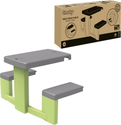 Vytvořte dětem vlastní koutek na hraní a svačinky s praktickým piknikovým stolem SMOBY. Odolný plast s povrchovou úpravou ANTI-UV chrání barvy před sluncem, snadná údržba a stabilní konstrukce zajistí bezpečné používání doma i na zahradě. Stůl s dvěma integrovanými lavicemi je ideální pro společné hry, kreslení i malé pikniky.