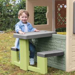 Dětský piknikový stůl SMOBY je skvělé rozšíření k zahradním domkům i samostatná hračka pro venkovní i vnitřní použití. Přírodní barevnost se hodí na každou terasu či zahradu a skvěle ladí k domkům SMOBY. Díky povrchové úpravě ANTI-UV si stůl dlouhodobě uchová intenzivní barvy bez blednutí.